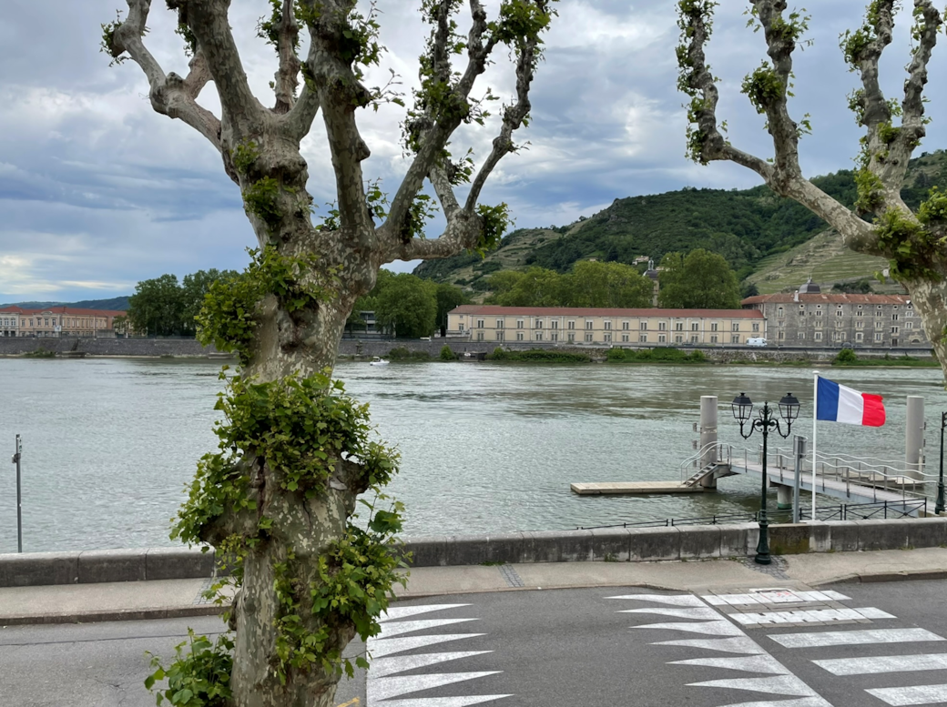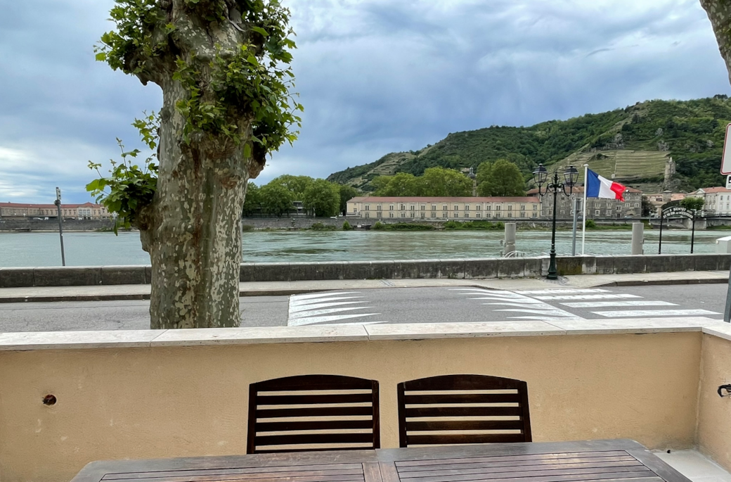 La terrasse est la pièce maîtresse de ce lieu, avec une vue directe sur le Rhône et les côteaux de vignes, et tout l'équipement pour se relaxer en extérieur !